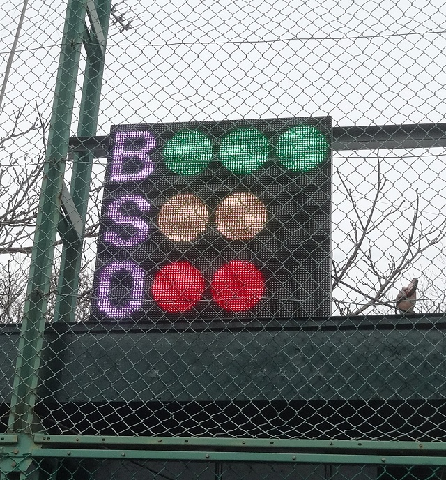 神奈川県 私立横浜H人高校様 | バックネット側 BSO表示、外野側球速表示、スピードガン HP2使用 960mm×960mm(バックネット側)