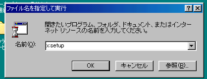 選択すると次の画面が出ますので、ファイル名にCD-ROMのあるドライブのsetup.exeを起動します。