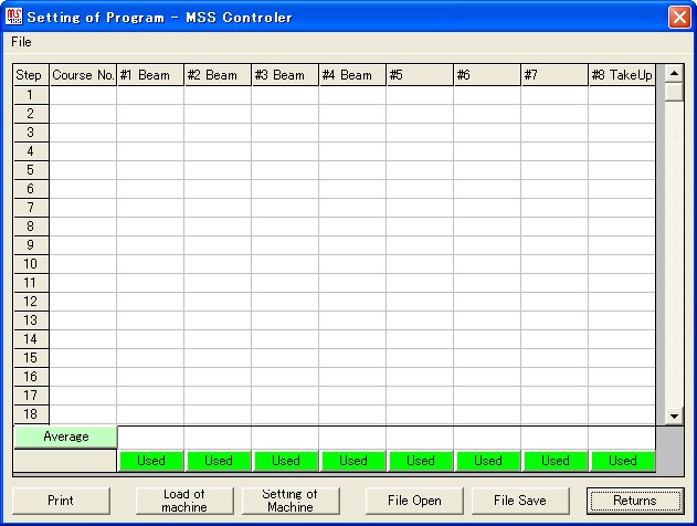 機械を動かして、編み上げメータ長が100.0mになったときに、メカ(経編機)を停止させます。
