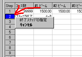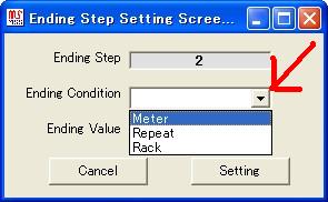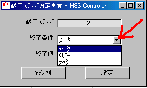 機械停止条件をステップのリピート数に設定します。