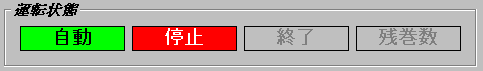 | 停止 運転 Stop driving | 運転中、停止中のモニターです。 Running it is a monitor while stopping. 非常停止の場合は、エンコーダ及び、非常停止ラインの確認をしてください。 Confirm the encoder and the emergency stop line at the emergency stop. |