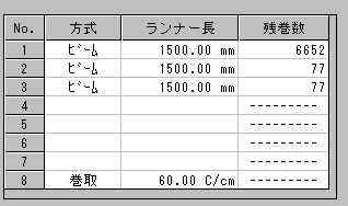 方式(ビーム、ローラ、巻き取り)を表示します。