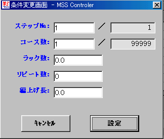 ステップ1,コース1、ラック0.0、リピート0、編み上げ長0にリセットできます。
