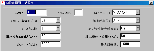 | メイン経編機からエンコーダに対する減速比を入力します。