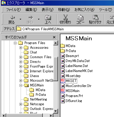 インストールされたディレクトリを探して、mssmain.exe(MSSメインプログラム)mkset.exe(MSSメカ設定プログラム)のショートカットを作ります。